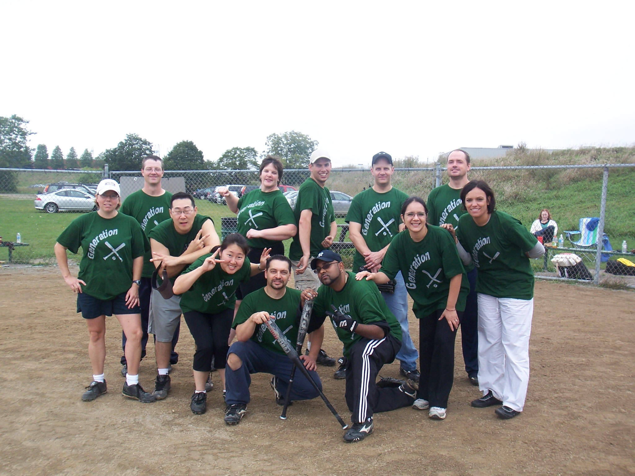 Generation X. This years uni’s are Brown with Carolina blue trim. Odd, but growing on me. Monday was opening day. We won 8-6. I went 2 for 3 with 2 rbi’s. The out was a sac fly. Holla. hahaha. Today was the new league. I joined my baby cousin’s league. I say baby and he’s really like 21 or 22. Babies to me. Yes I’m playing with kids like 10 years younger than me in this one. We won, 17-7. I went 2-3 I have no idea how many rbi’s and my defense was not shall we say … rickety first day like. Unlike ummm .. well last year. Had fun. The best part was standing on 2nd and watching my lil cousin try to hit me home. He did. Twice. Let’s see how much this body can take. I get to play 2 times a week, who needs a gym?